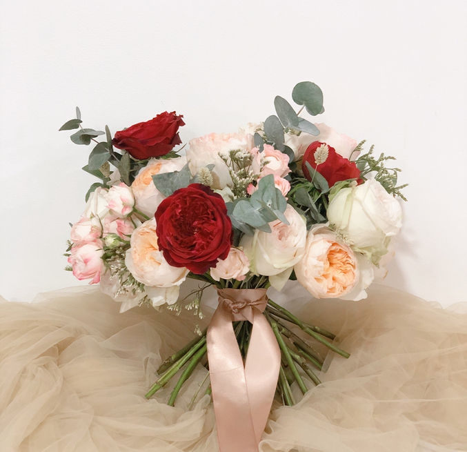 Contains of 2 type of import flowers, 2 type of local flowers, fillers, and foliages.